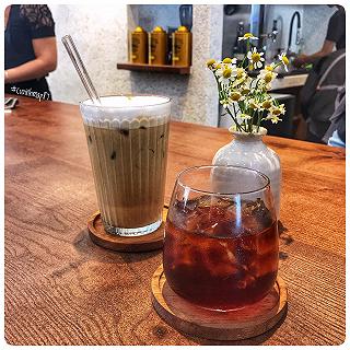Bạn mình thích uống cafe, mình thì thích thử quán mới nên lâu lâu hay bỏ trà sữa đi theo nó. Đây là 4 ly cafe, latte giá chát nhưng không đặc sắc lắm mình từng uống.