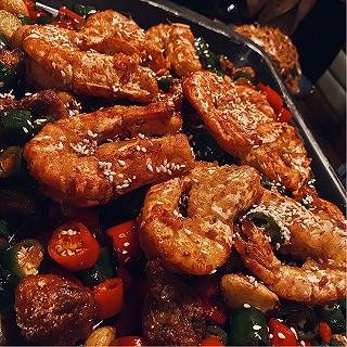 Hao Yu nổi tiếng với mấy món cá nướng sốt kiểu Trung Hoa khá là lạ. Mình đi 6 người, gọi 1 cá lăng sốt huyết trùng khánh, 1 tôm sườn ...