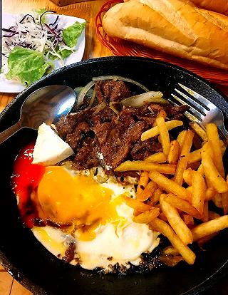 Lần đầu tiên đến quán nhưng ấn tượng rất tốt. Không gian quán khá nhỏ nhưng nhìn chung thì decor ổn, có góc sân nhìn khá xinh. Mình và bạn gọi một phần chảo, beefsteak và salad gà. Chảo 3 - gồm có bò,...