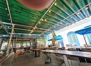 Quán nằm trong khuôn viên Dinh Độc Lập. Xung quanh nhiều cây xanh lâu năm, thoáng mát. Có bán điểm tâm sáng nhưng ít món lựa chọn. Nhưng bù lại không gian xanh mát