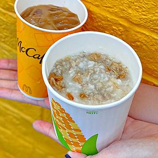 Sáng đi làm vội quá nên ghé Mc Donalds định ăn đỡ phần combo rùi đi , mà nay ghé được mấy bạn nhân viên giới thiệu món cháo thịt bằm với nui thịt bằm mới toe nên mình thử luôn.