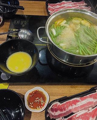 Nước lẩu chua cay, thơm cực kì mùi kim chỉ.