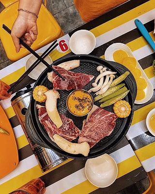 📌 Menu quán nhiều món bò dữ lắm nhưng chủ yếu nhóm mình ăn bò nướng, bò sốt trên chảo nóng với lẩu...