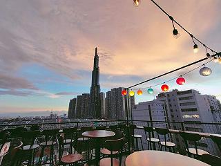 Quán nằm ở tầng thượng của tòa nhà 7 tầng quận Bình Thạnh, không gian rộng rãi và thoáng mát.