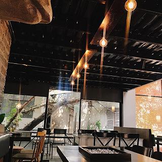 Không gian quán rộng rãi với rất nhiều cây. Giữa nhà có 1 cây cổ thụ to đùng mà hình như giờ bị chết trơ gỗ rồi.